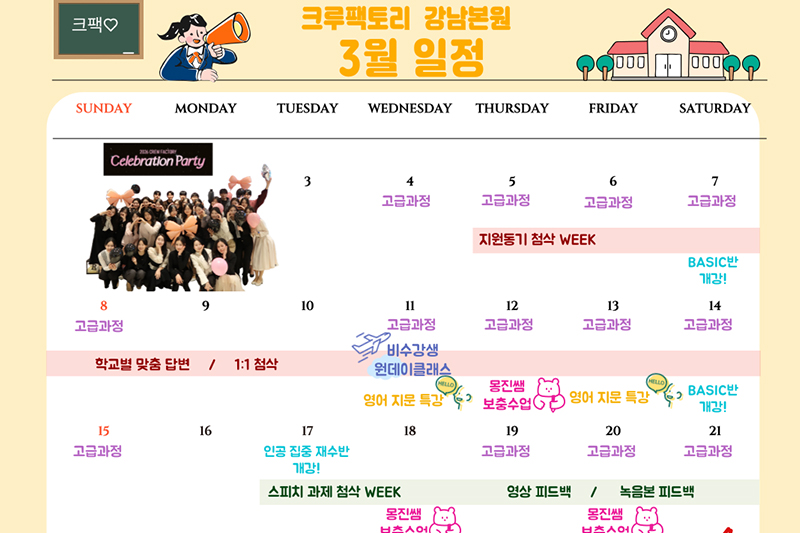 대형학원인데도 관리가 잘되는 편이고 특강도 넘 알차요ㅎㅎㅎㅎ무엇보다도 쌤이 최곱니다 여러분....♥♥♥